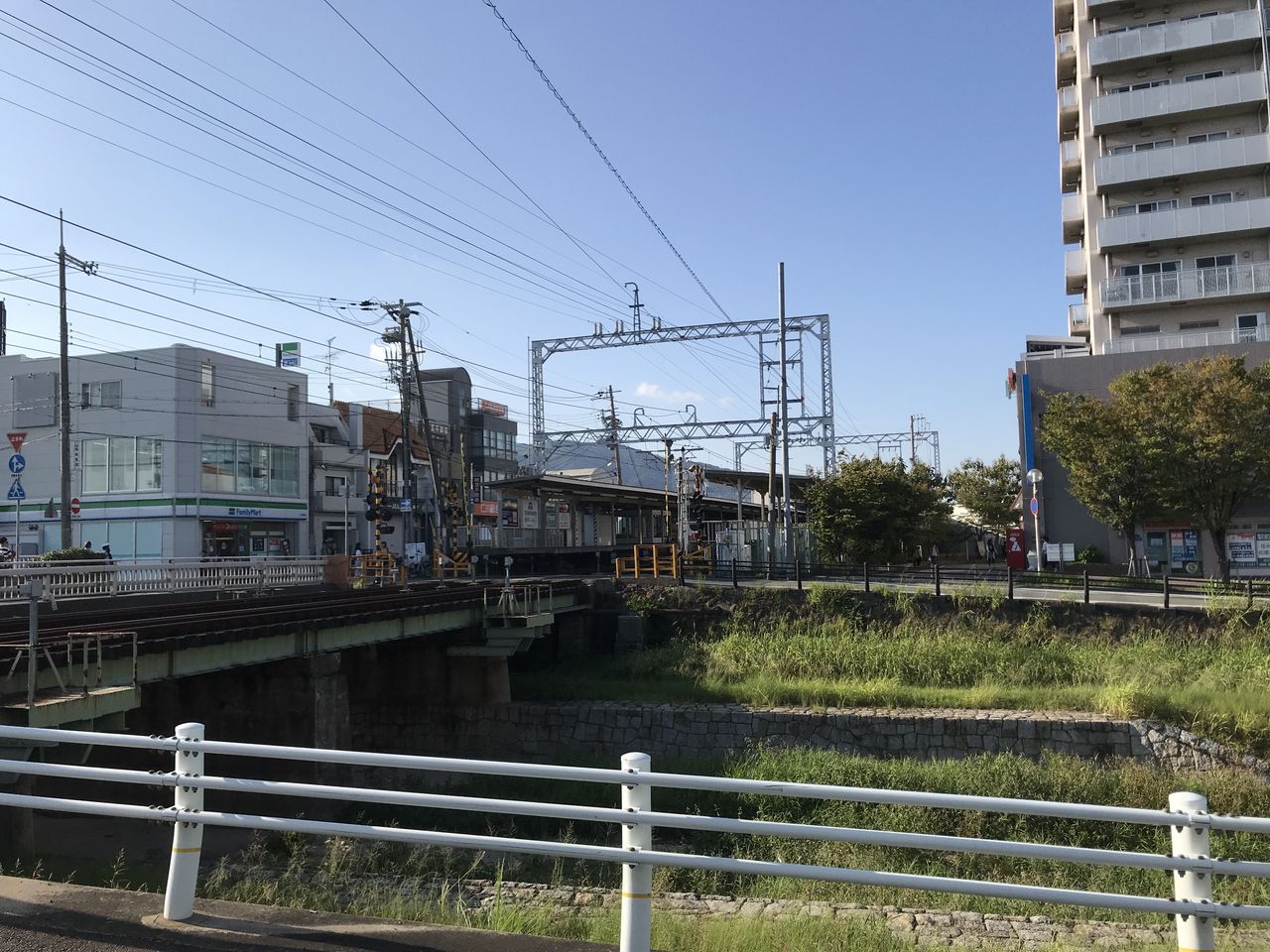 写真の奥に芦屋川駅がわずかに見えます。