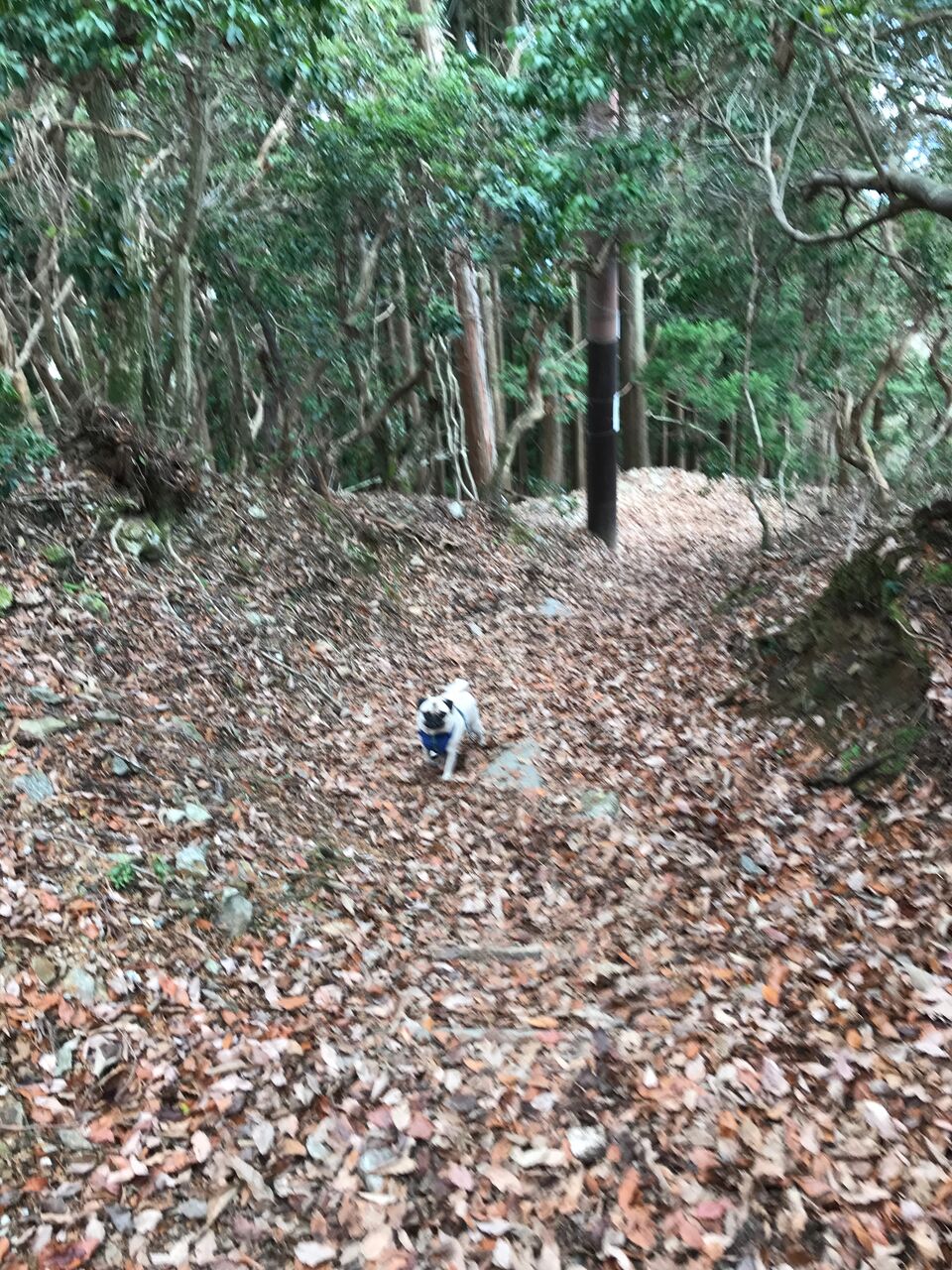 下の娘が遅かったのでゆっくり付いて登っていると先で愛犬が待ってくれています。