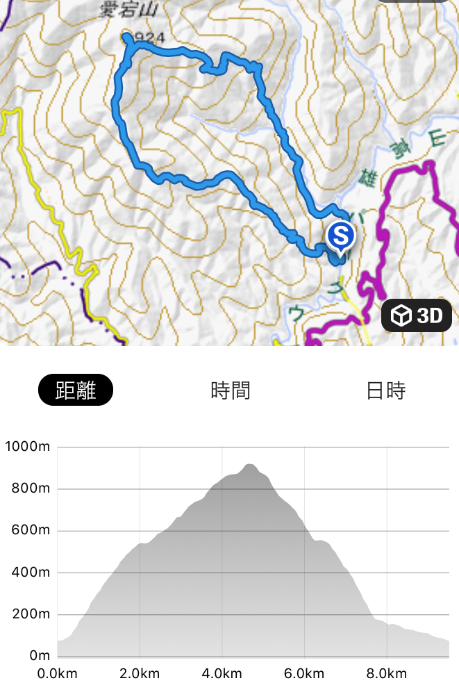 今回の行程です。麓の駐車場から山頂までの参拝道を上り、反対側のルートより下り再び駐車場に向かうルートです。