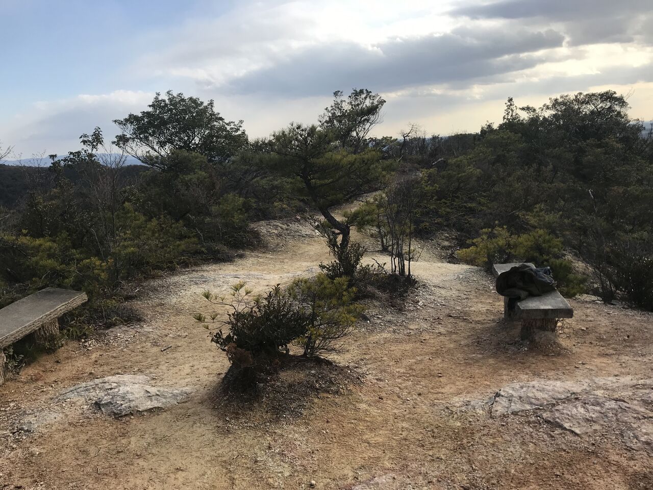 三草コースのちょうど中間点にベンチが二つあり休憩に丁度良い場所でした。
