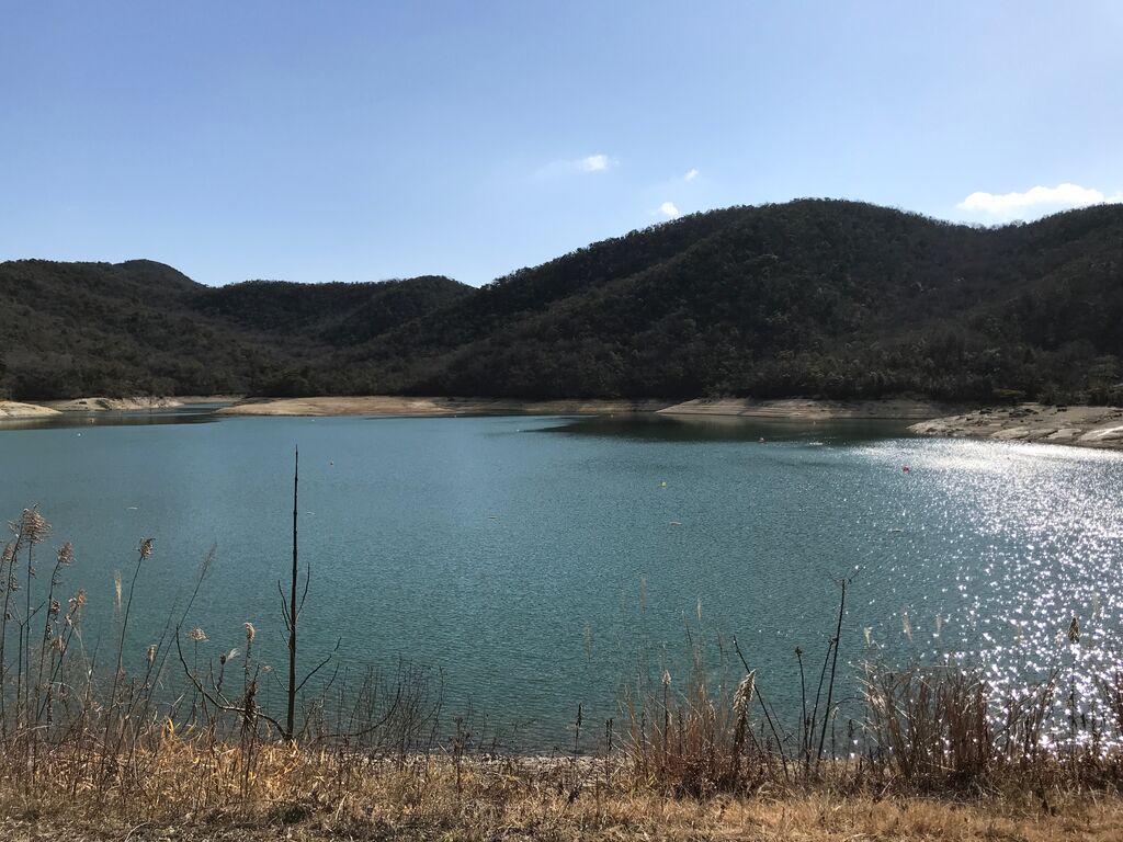 三草コースからは出発点近くの昭和池を眺めながら下ることが出来ます。