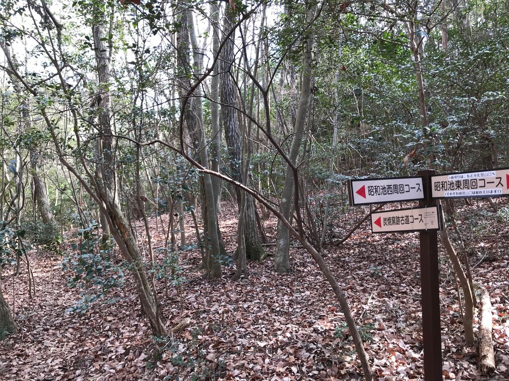 昭和池隣の駐車場からスタートし、昭和池西回りコース~炭焼窯跡コースを登り三草山山頂へ、三草コースを下り再び駐車場までに行きグルッと一周できるコースでした。