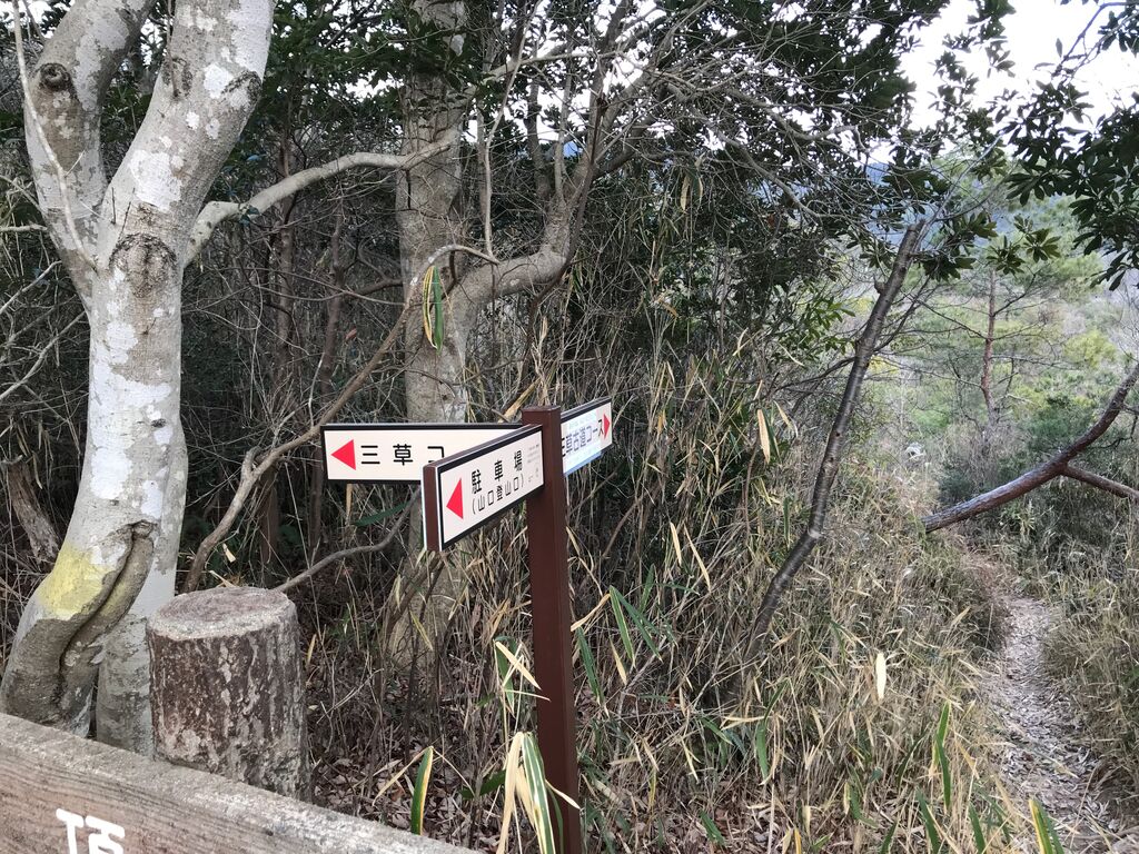 三草コースを下りきり駐車場までと他のコースへ行く分岐点まできました。