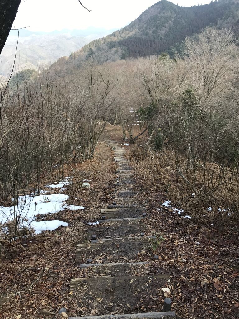 次の山までの直前は長い階段を降りなければなりません。