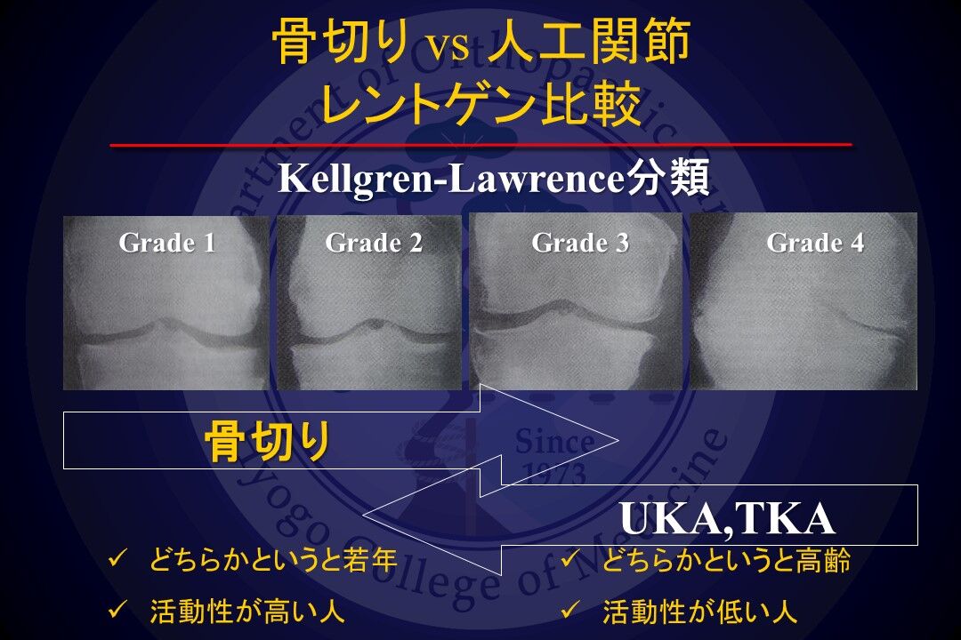 手術としては人工膝関節か骨切り術の2つに分けられます。
