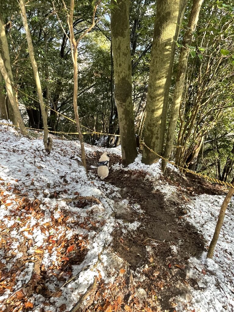 山頂から直ぐは雪解けの状態の所+落ち葉でかなり足場が悪くロープを伝いゆっくりと下りました。