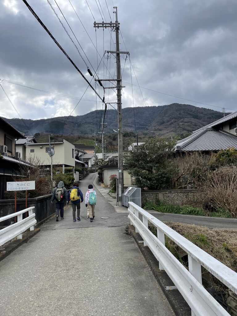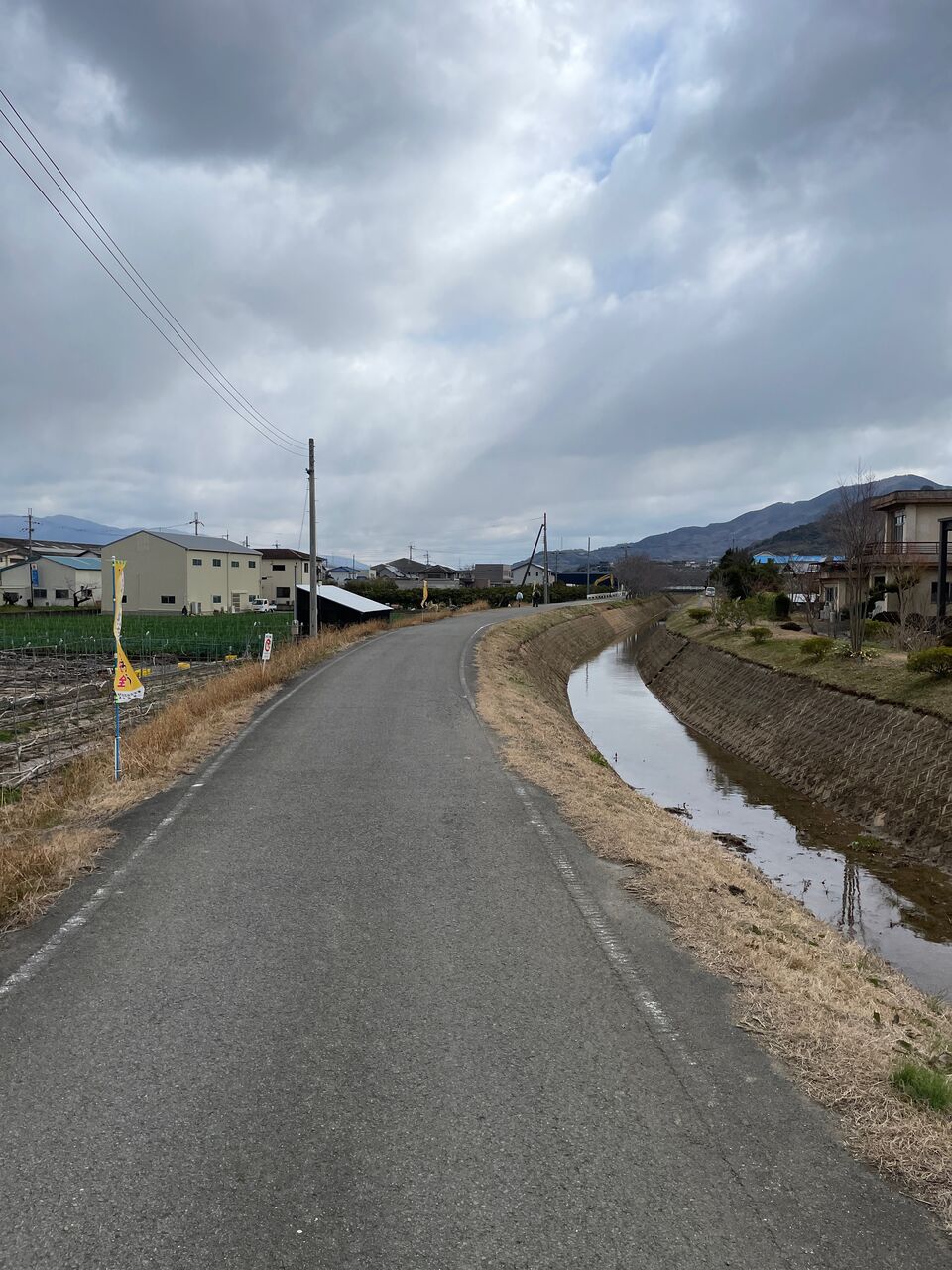 堤防沿いを5分程歩いてから右に曲がり住宅地の坂道を山に向かい進みます。