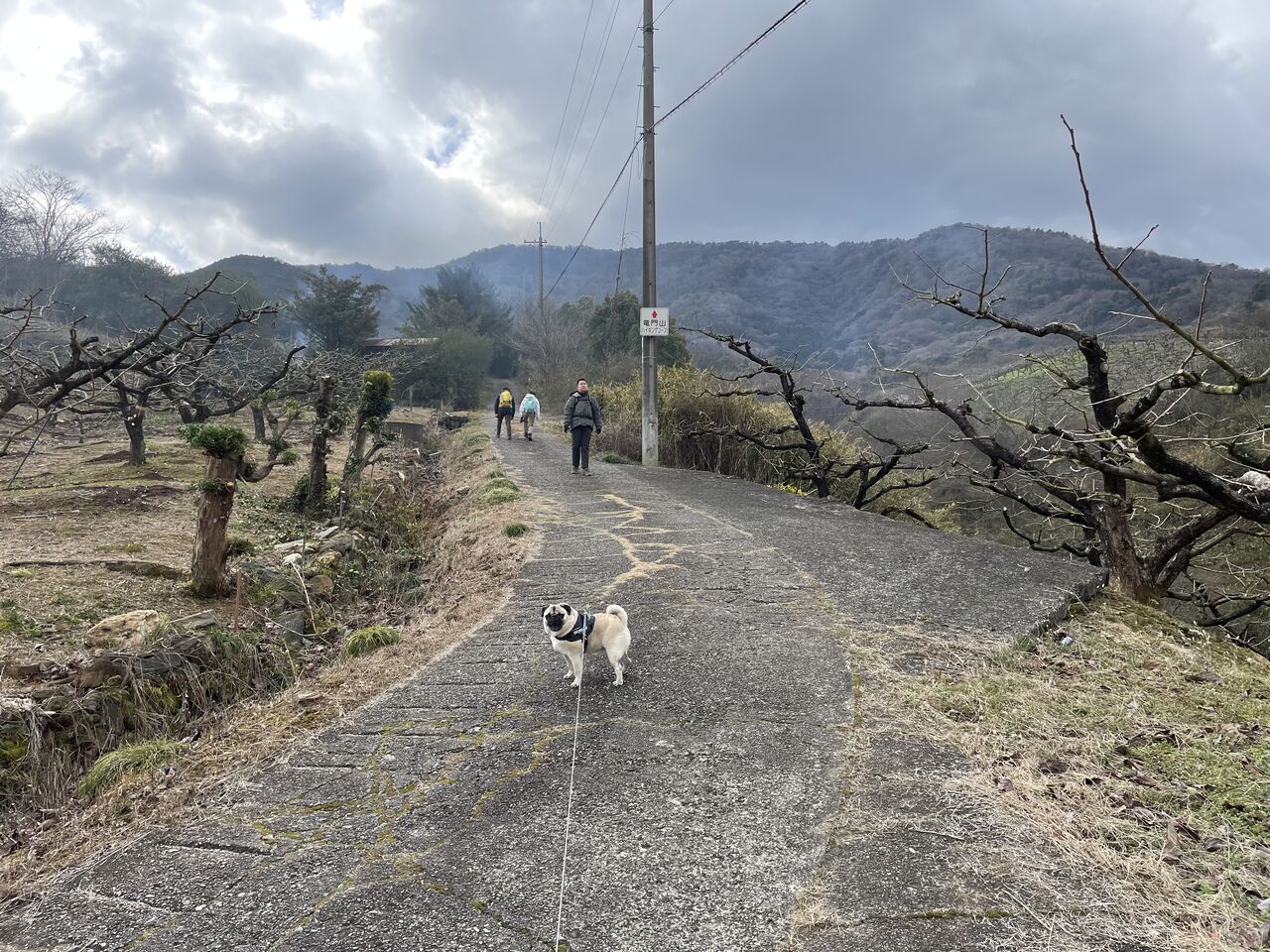 ミカン畑を20分程登るとようやく一度舗装路が終わりました。