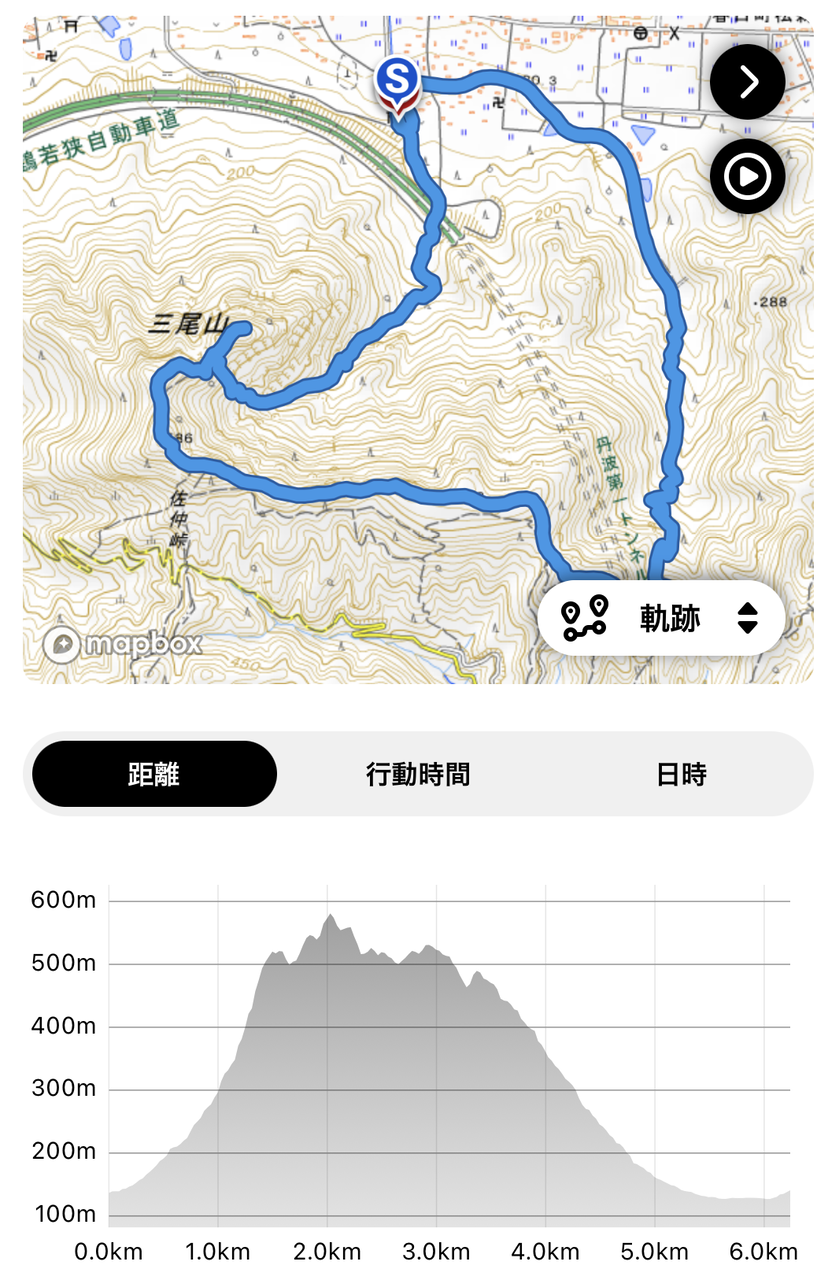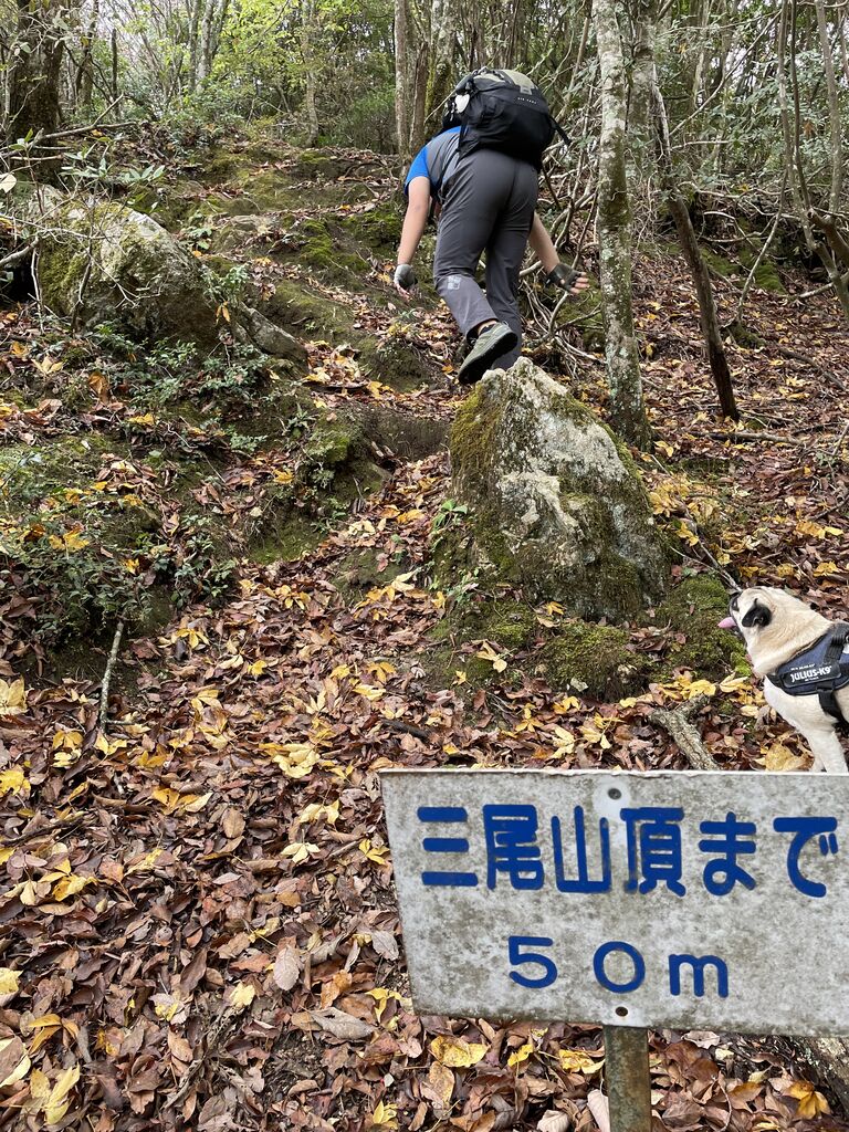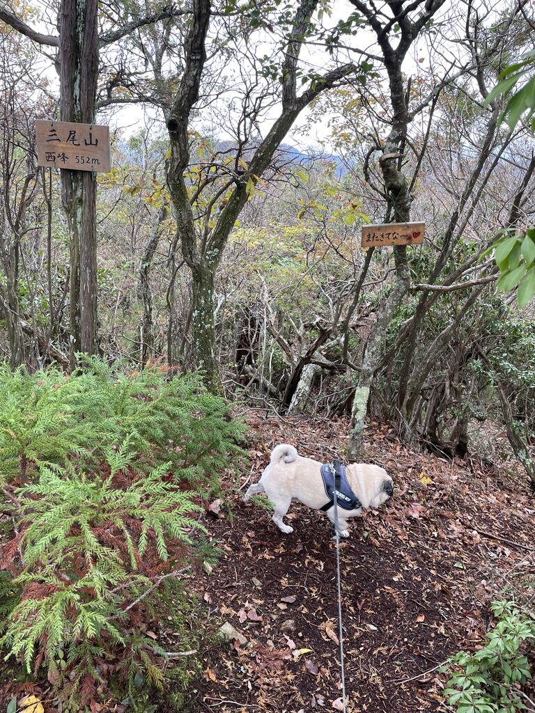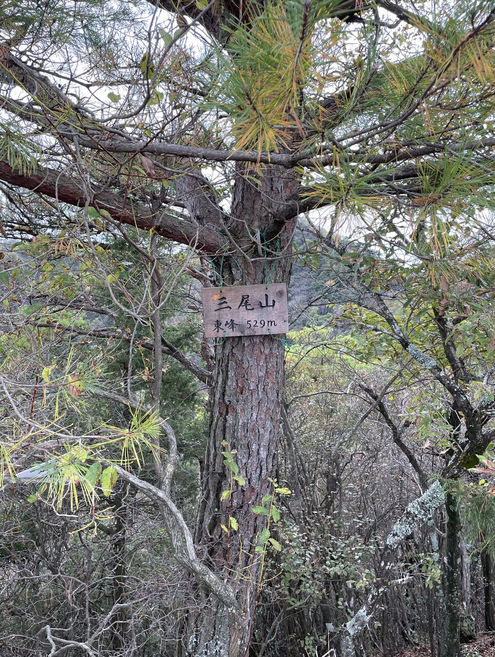 麓の駐車場をでて、三尾山の東峰→西峰→主峰を経てから下り鏡峠からさらに下り駐車場までの周回コースでした。