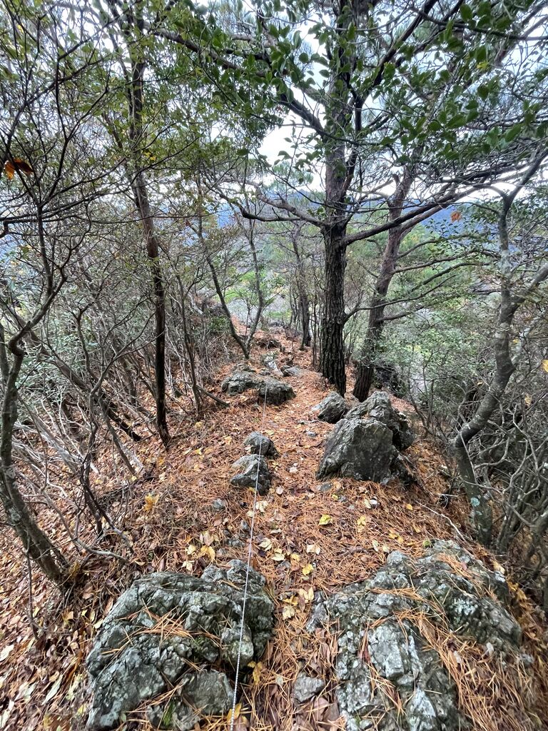 主峰から10分程下ると比較的緩やかな尾根沿いをいきます