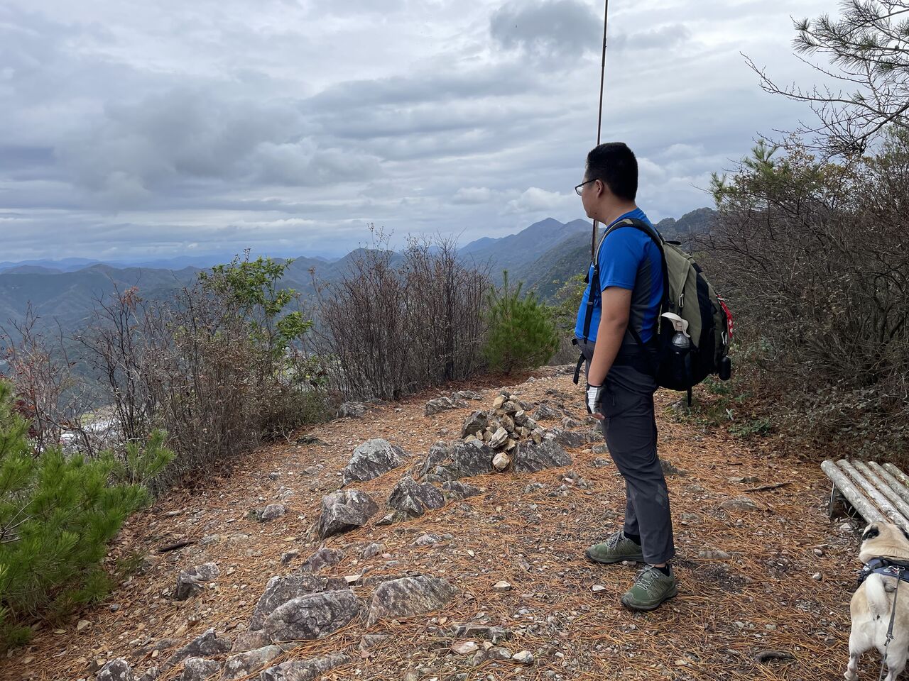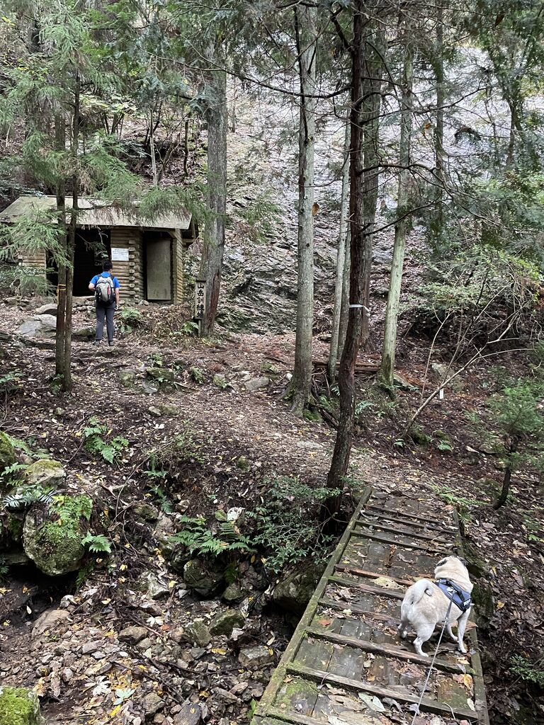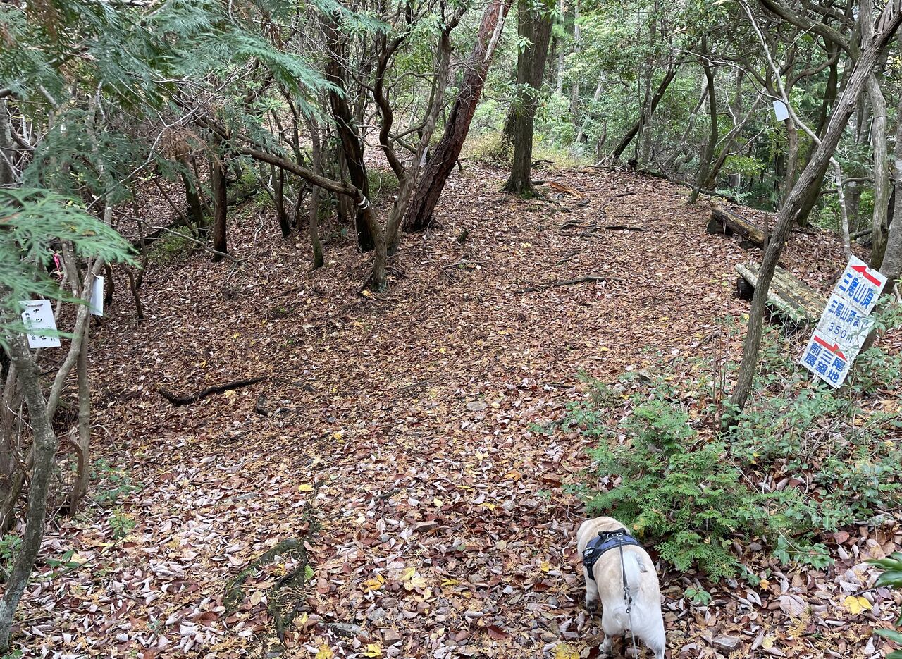覗岩からはアップダウンを何回も繰り返しながら下り、途中で愛犬も根を挙げたため抱っこしながら下っていたので本来は主峰から1時間ほどで到着するところ1時間20分程で鏡峠へ