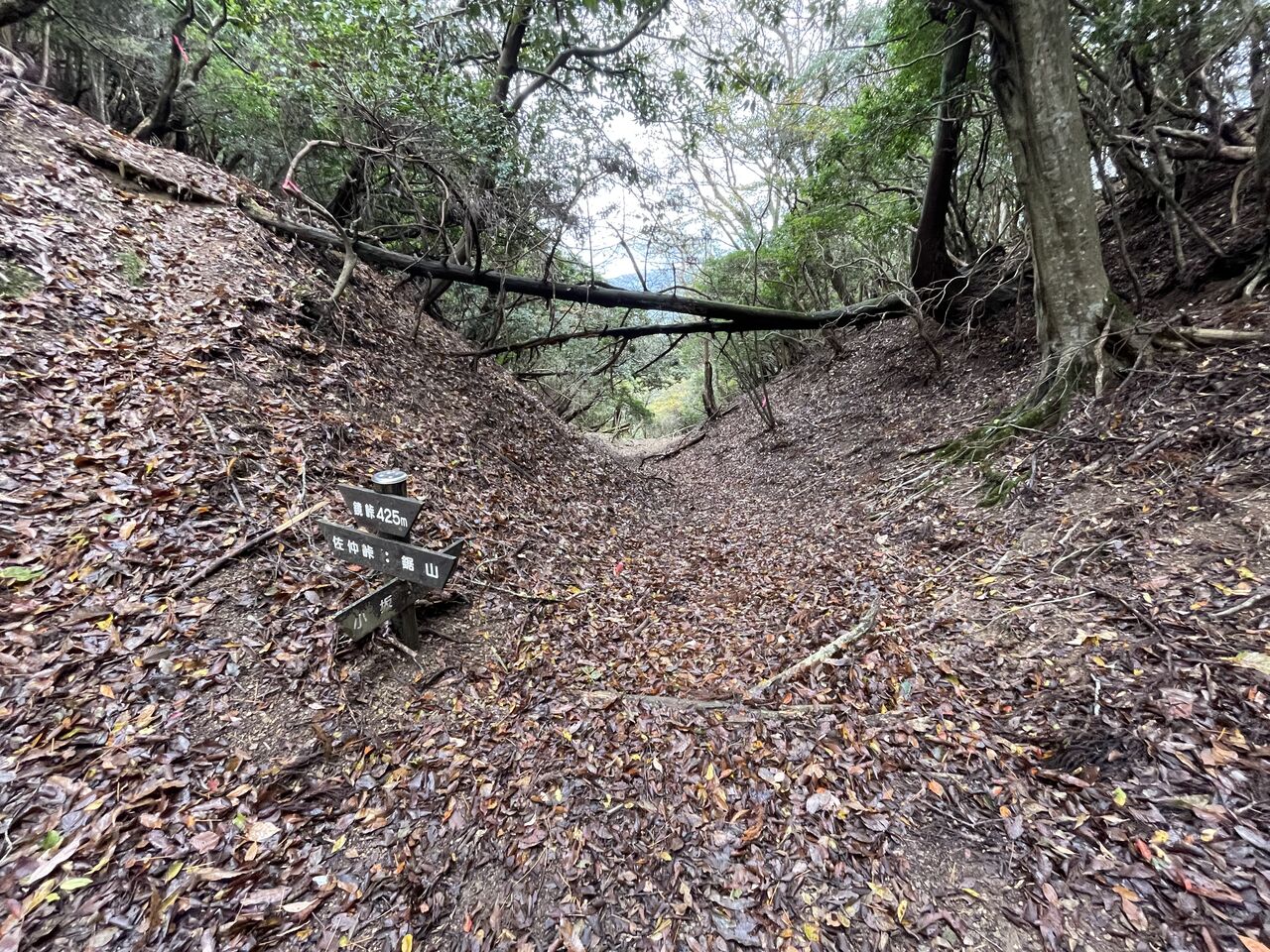 この山頂を少し下りたところは二の丸であったようですこし平たくなっていておりその面影がありました。