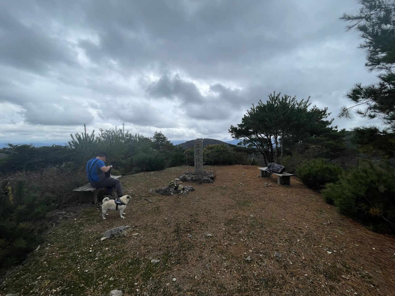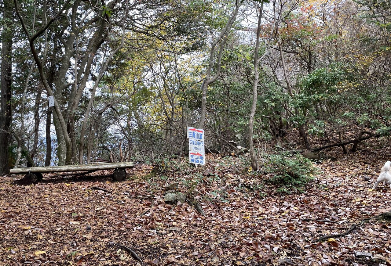 三尾山の山頂は3峰あり、この写真の向かって右側に東峰、左側にまず西峰がありさらに行くと主峰があります。
