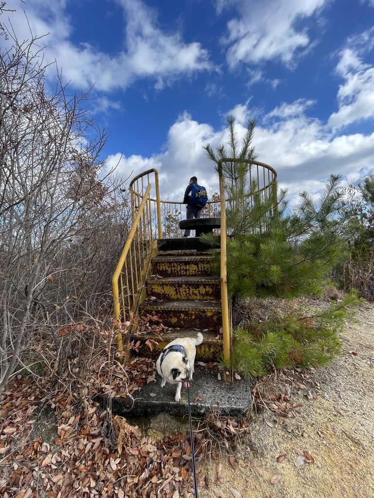 息子を先頭にしパグが息子を追いかけるように登り、最後尾に私