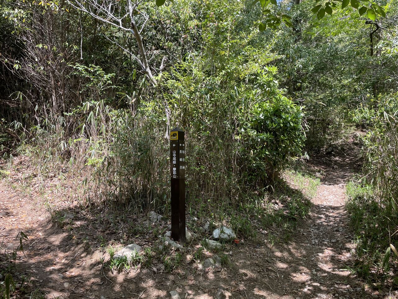 これまでは左側の山寺尾根のルートを行きましたが、今回は杣谷峠への徳川道をいくため右側を進みます。