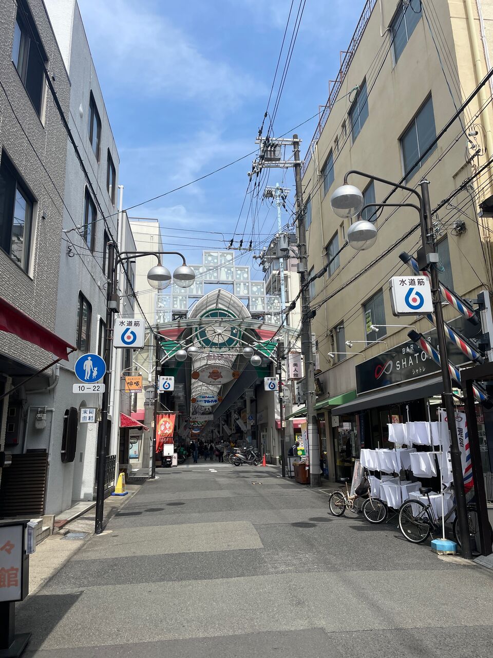 30分程で下り、そのあと20分歩道を歩き、水道筋商店街に到着
