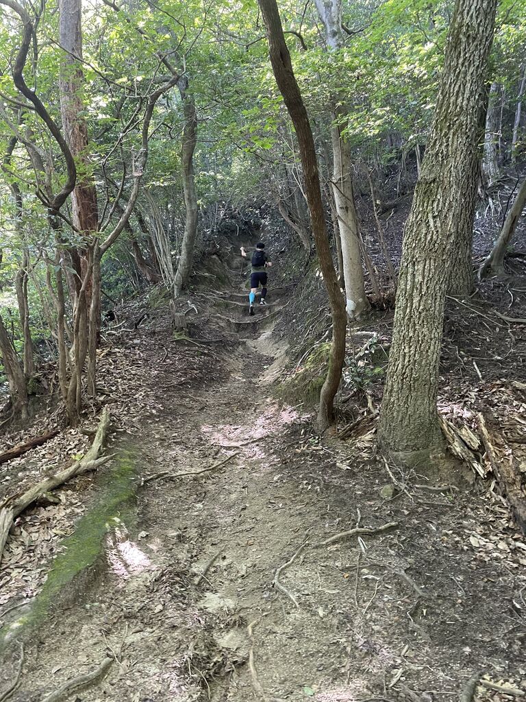 横高山を越えてさらに一つ山を越えて 仰木峠を越えると非常に走りやすいトレイルを一気に下り走ります。