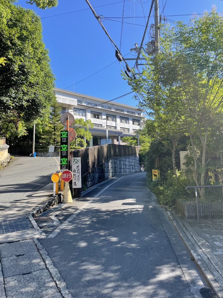写真奥に見える日本バプテスト病院の横道奥が登山口