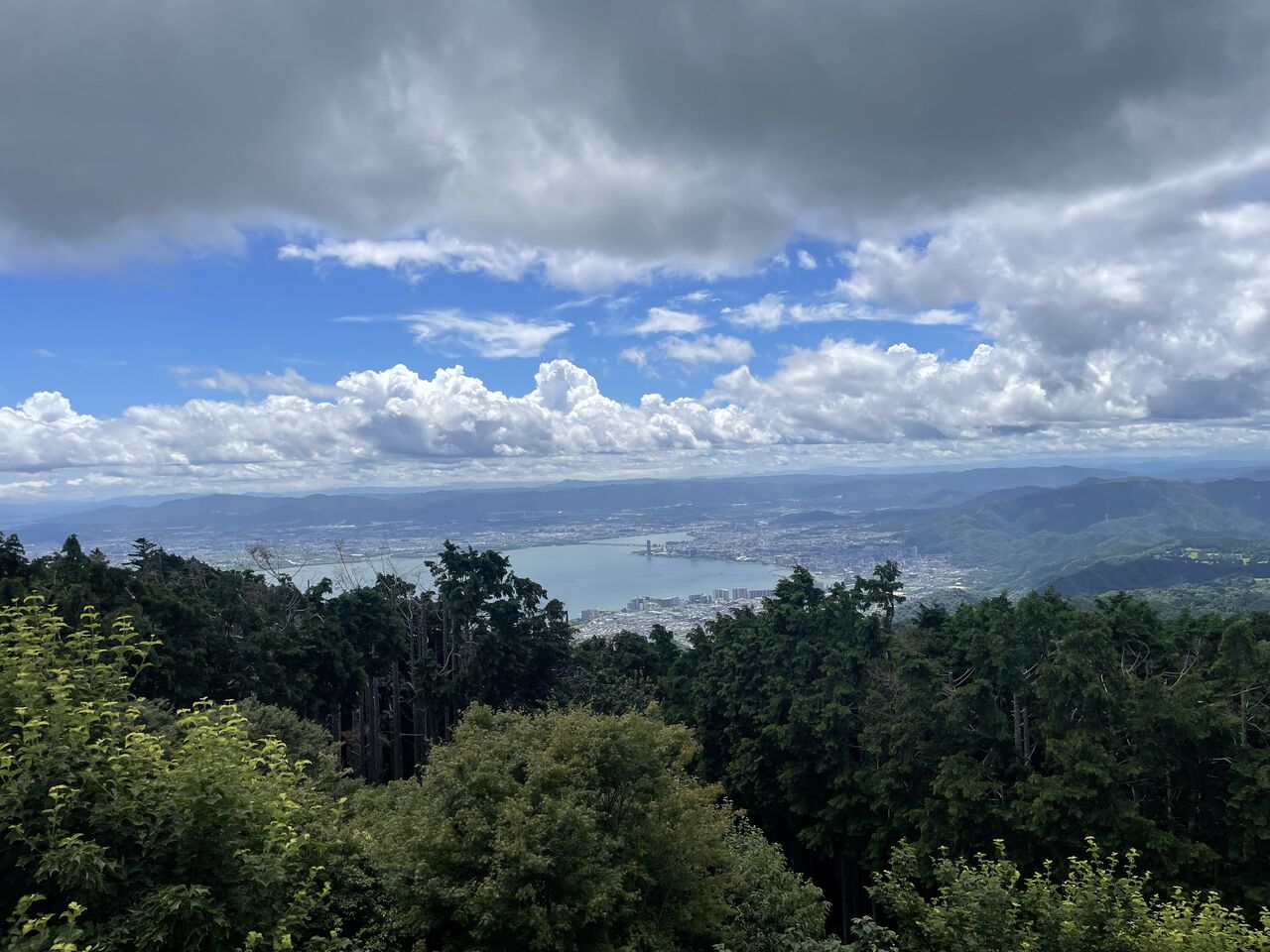 11時過ぎ 山頂近くの展望台から 京都の逆側の滋賀の琵琶湖が見えました。